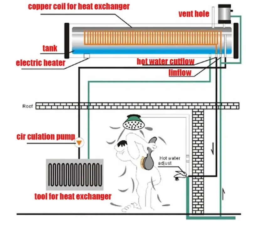 250L Pressurized Solar Water Heater System with Copper Coil Exchanger Vacuum Tube for Home or Commercial